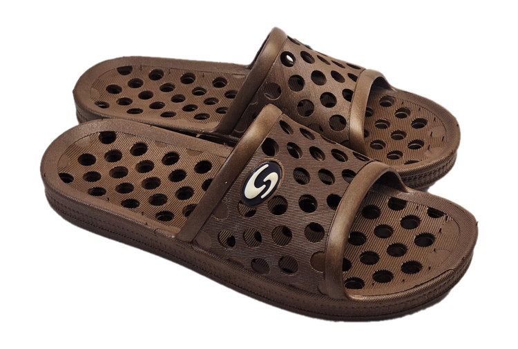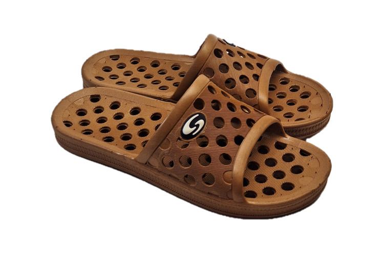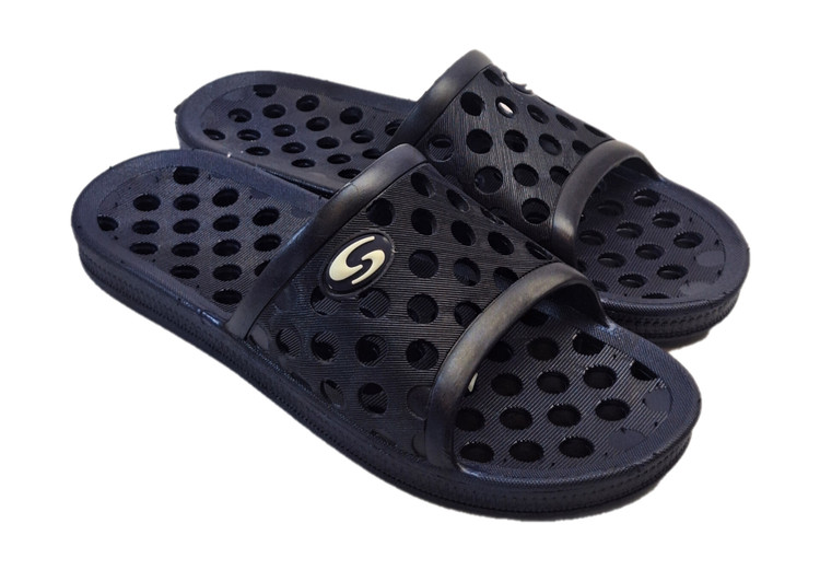 دمپایی پلاستیکی مردانه با طراحی ساده، مقاوم و کاربردی، مناسب استفاده در محیطهای مختلف از سرویس بهداشتی تا فضای باز.