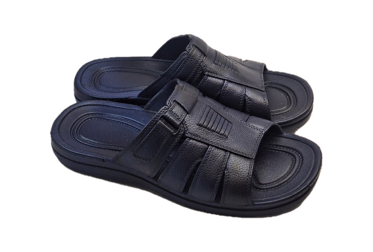 دمپایی پلاستیکی مردانه با طراحی ساده، مقاوم و کاربردی، مناسب استفاده در محیطهای مختلف از سرویس بهداشتی تا فضای باز.